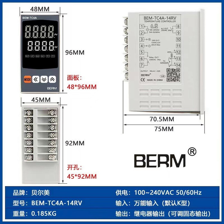 ترموستات دیجیتال BEM-TC4A-14RV از محصولات کاربردی برند برمه است که برای کنترل ساده و دقیق دما در کاربردهای صنعتی طراحی شده است. این مدل با ساختار جمعوجور، خروجی رلهای و دقت مناسب، انتخابی اقتصادی و قابلاعتماد برای کنترل دما محسوب میشود.